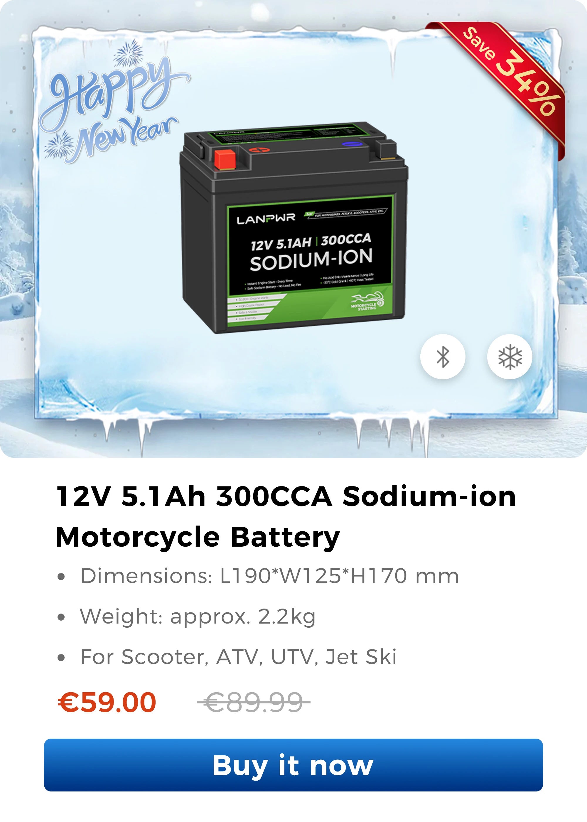 12V 5.1Ah 300CCA Sodium-ion Motorcycle Starter Battery