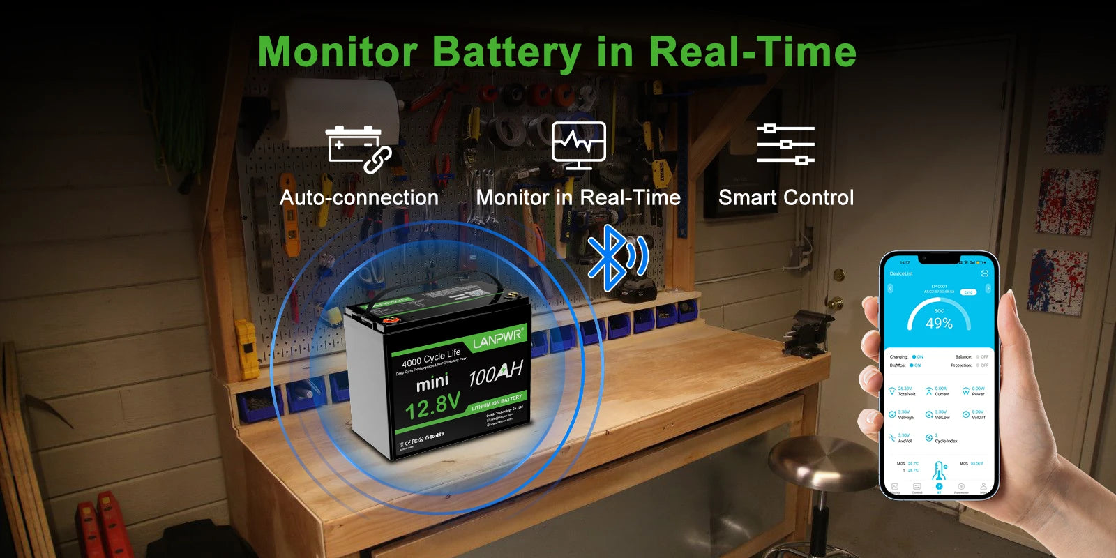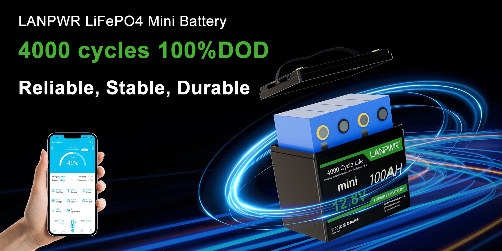 LANPWR 12V 100Ah Mini Bluetooth LiFePO4 Lithium Battery