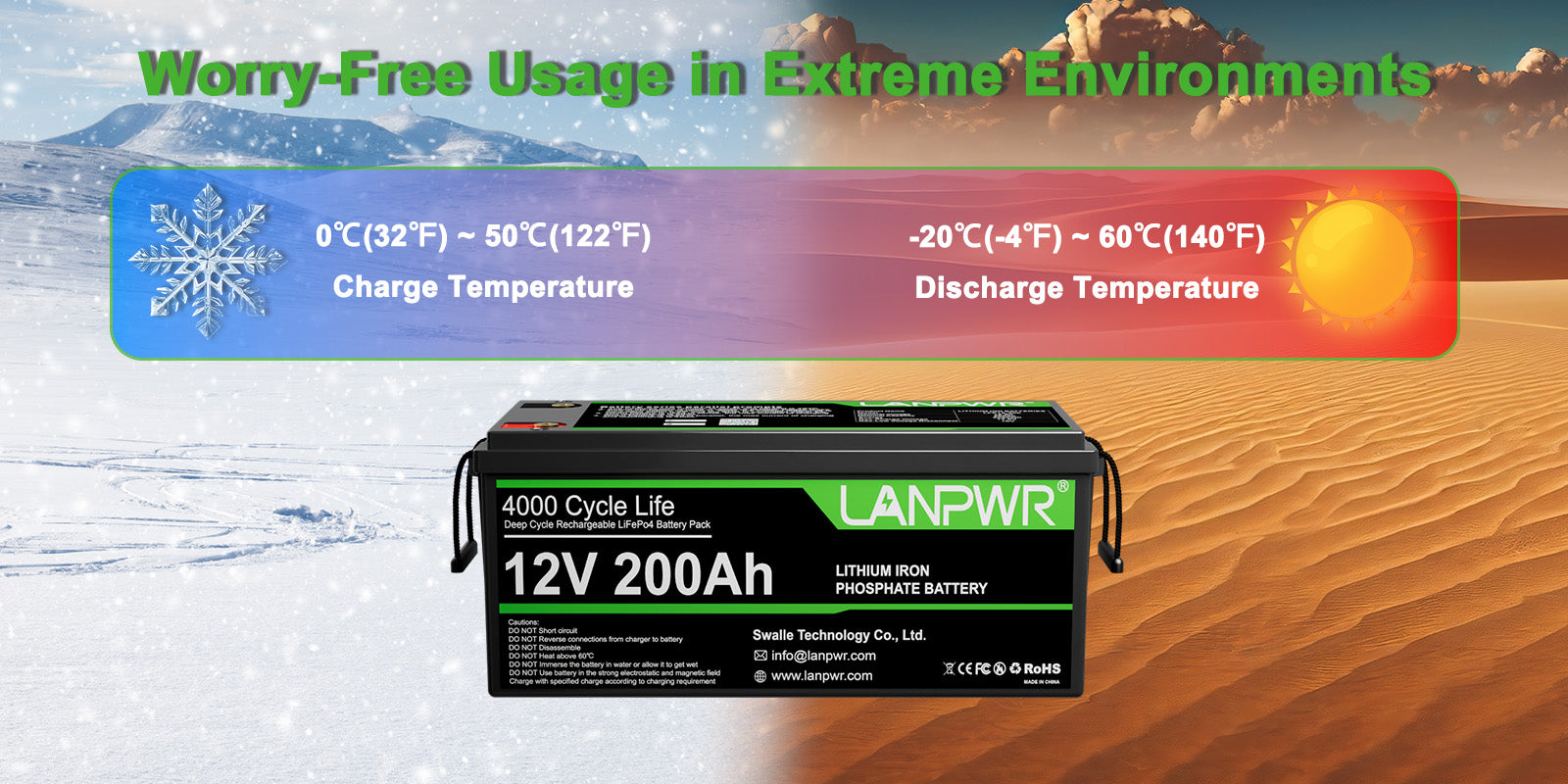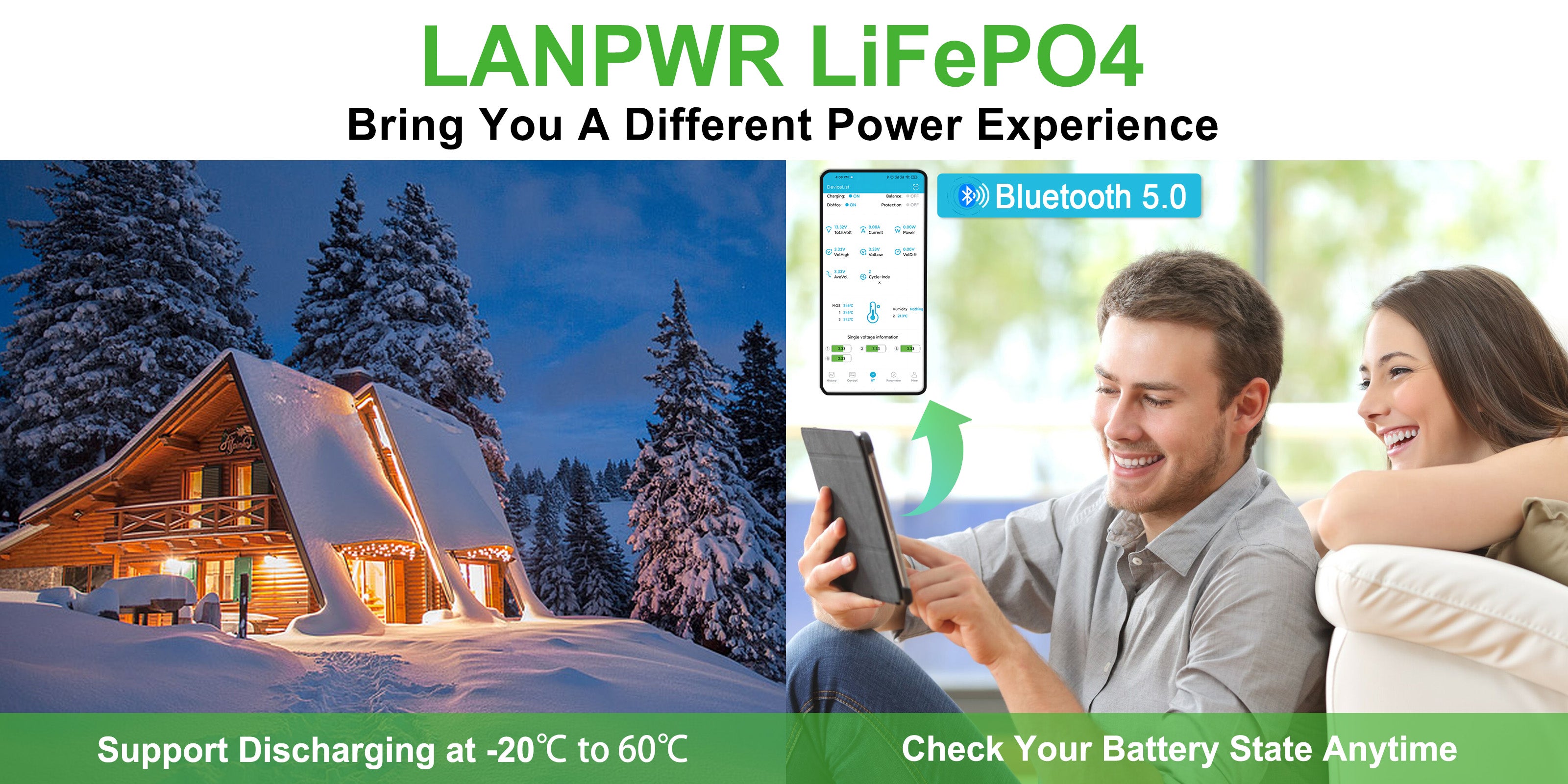 【Environmentally Friendly and Cost-Effective】The Lanpwr battery is eco-friendly, free from toxic lead, acid, or heavy metals, and demands less maintenance compared to SLA/AGM batteries. It also proves to be more cost-effective in the long run, offering an extended lifespan and higher efficiency. Make the switch to Lanpwr for a superior and sustainable energy solution.