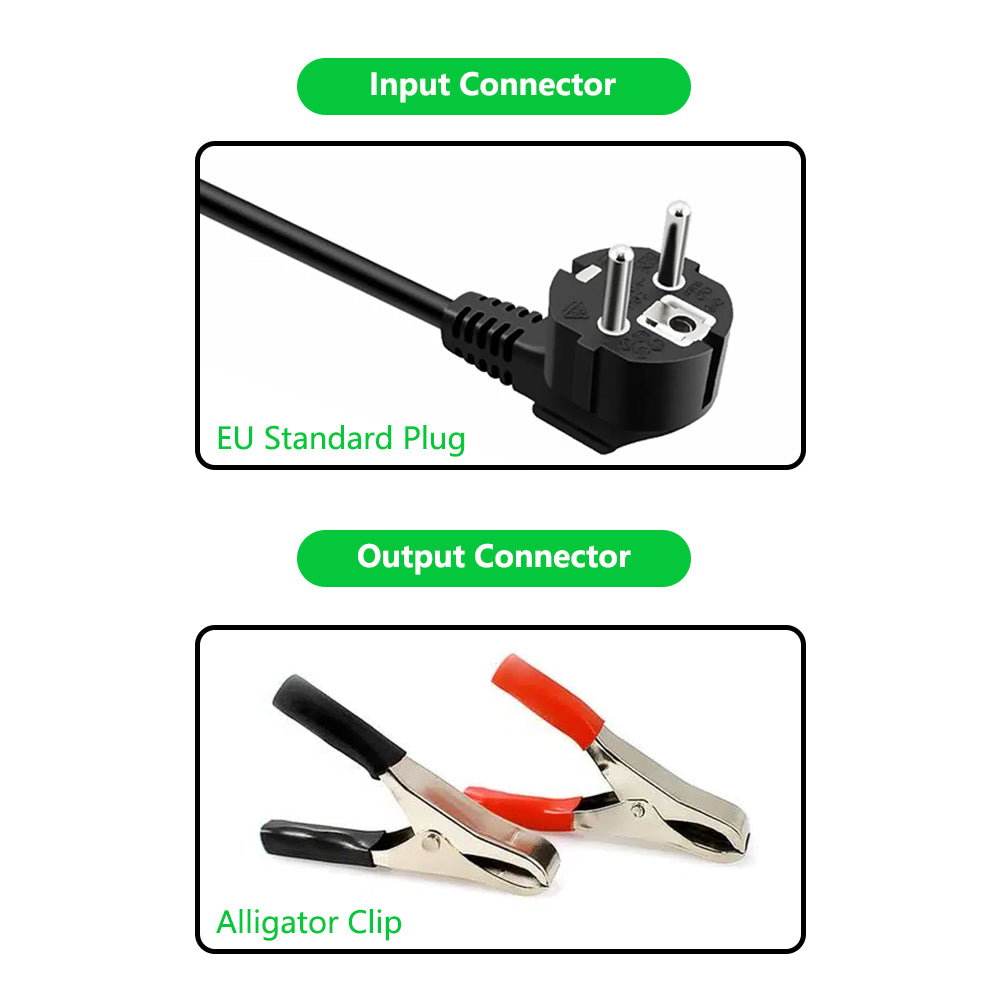 Comprehensive Safety Protection: Equipped with four safety protection features, including overheat protection, output short circuit protection, reverse polarity protection, and output overvoltage protection. The cooling fan effectively prevents the charger from overheating during long-term use, protecting internal components and extending its service life.