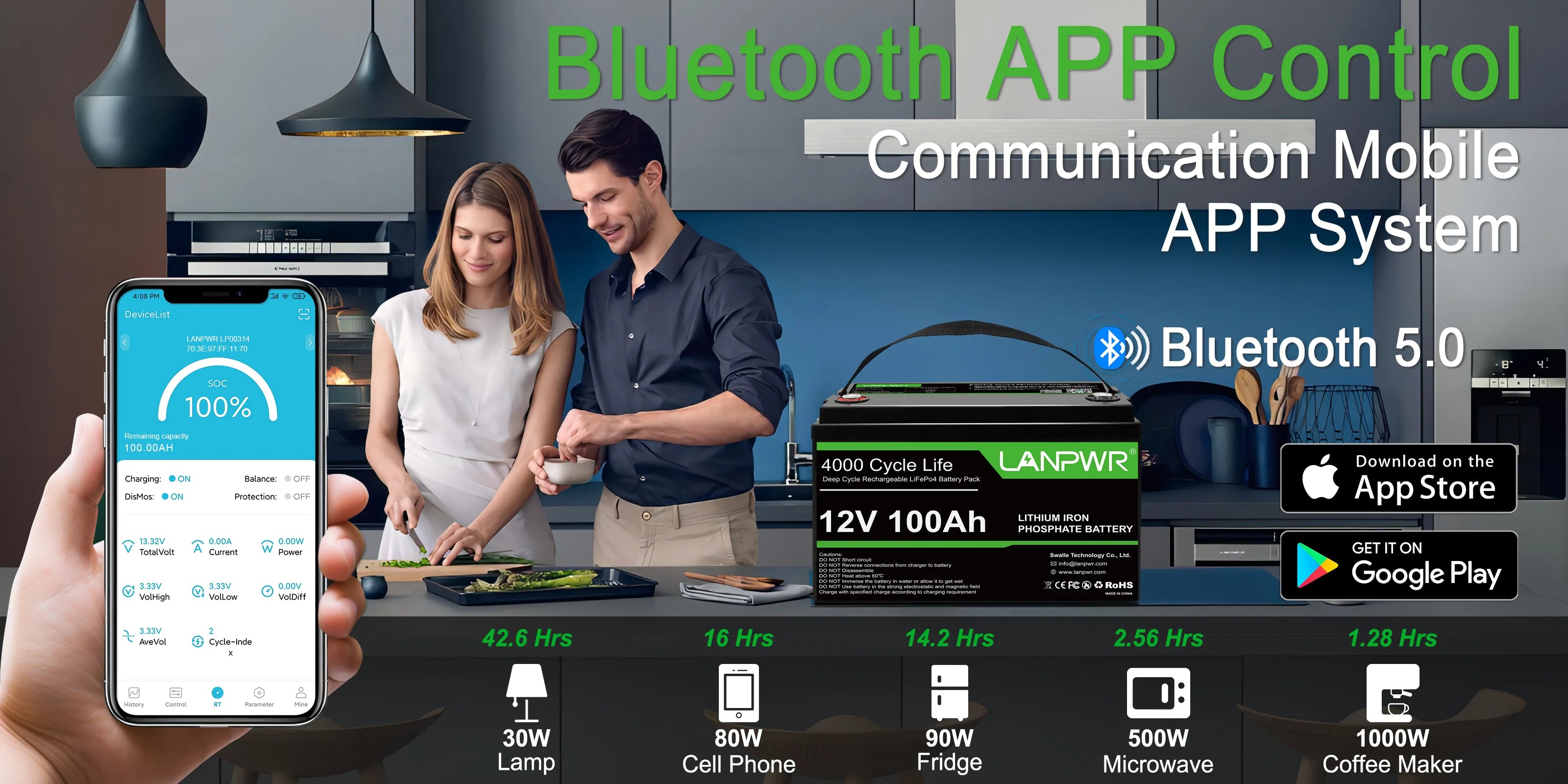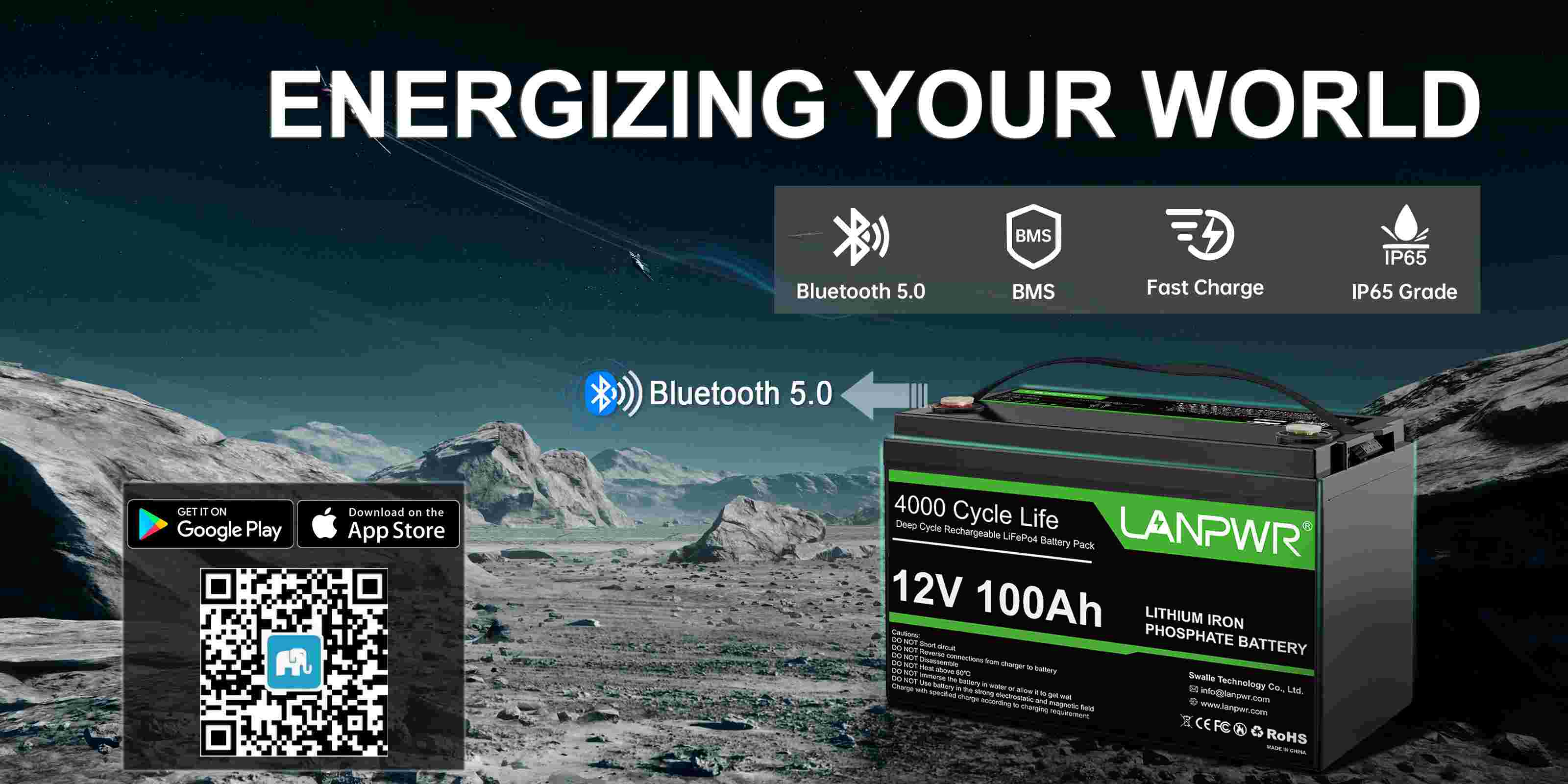 LANPWR 12V 100Ah LiFePO4 Battery with Bluetooth 5.0, 4000+ Deep Cycle Lithium Battery