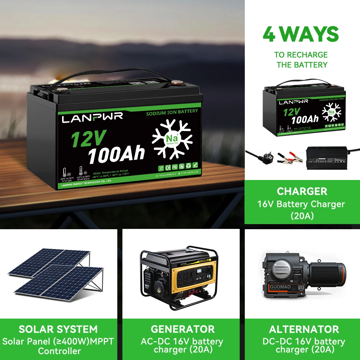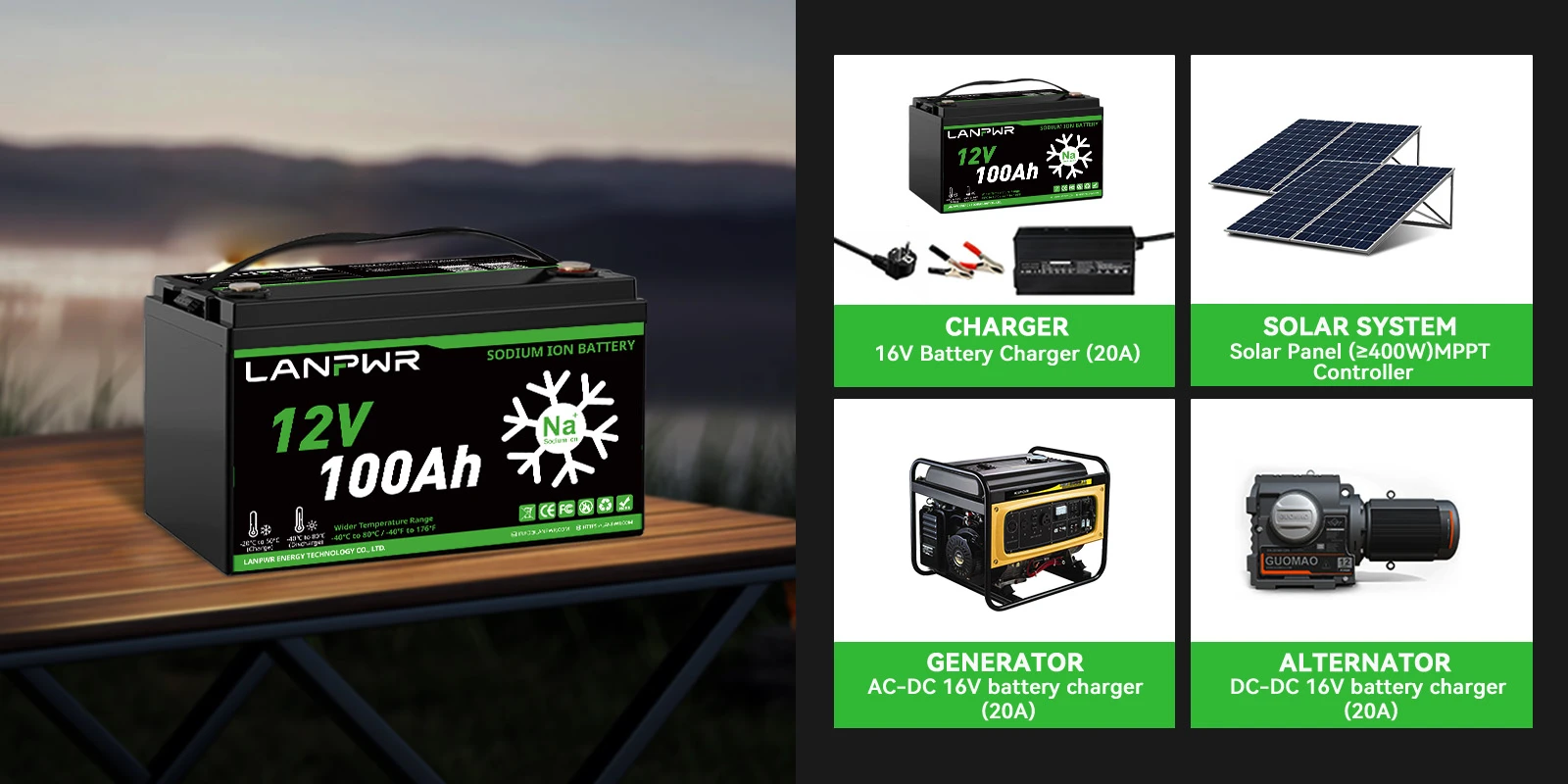 LANPWR 12V 100Ah Sodium-Ion Battery – Reliable Charging at -20°C