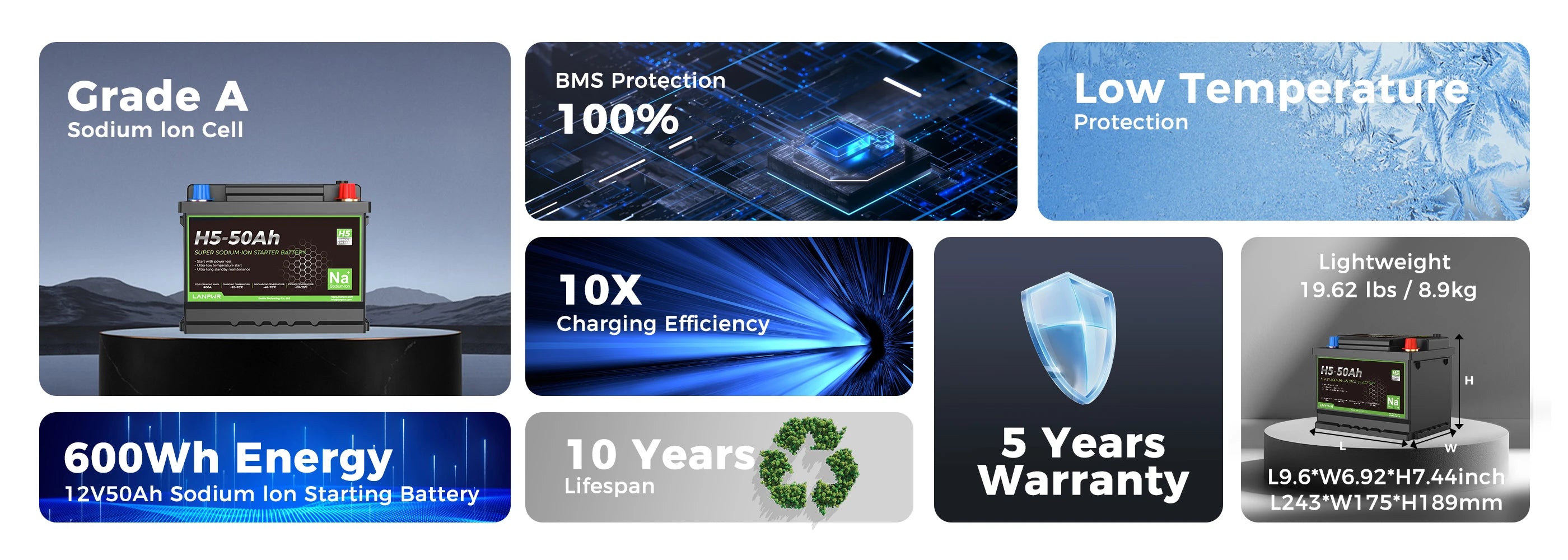 LANPWR 12V 50Ah Sodium-ion Starter Battery – Compact, Powerful & Eco-Friendly