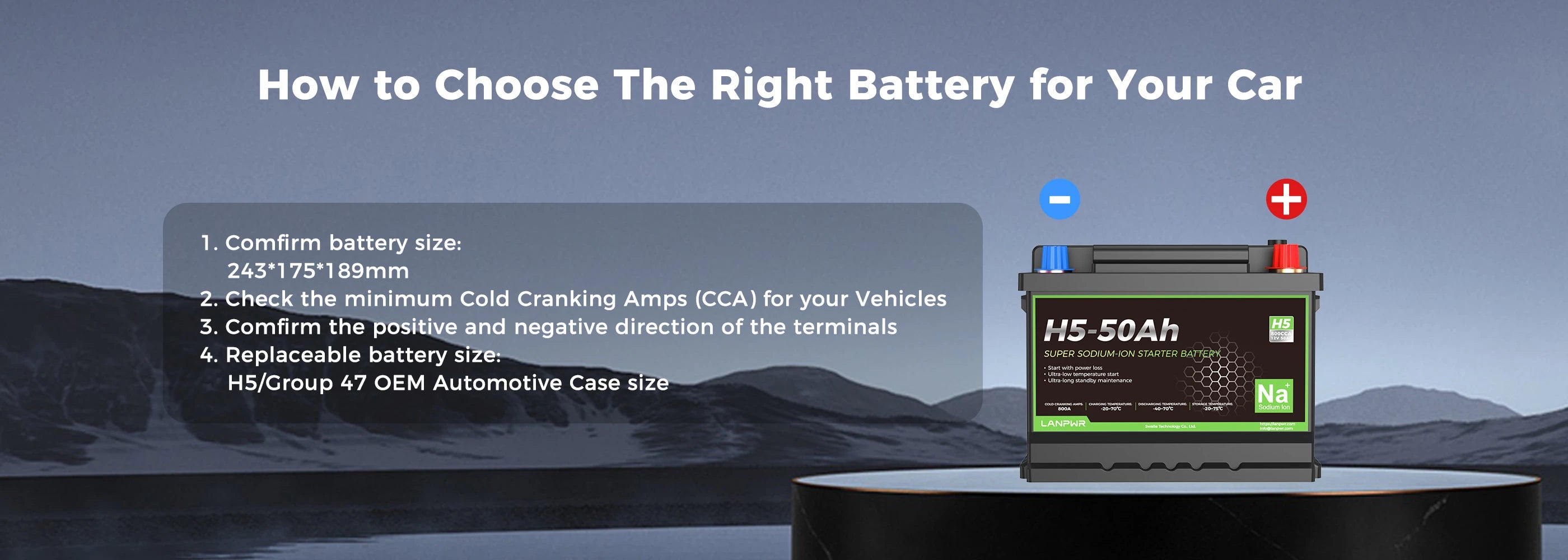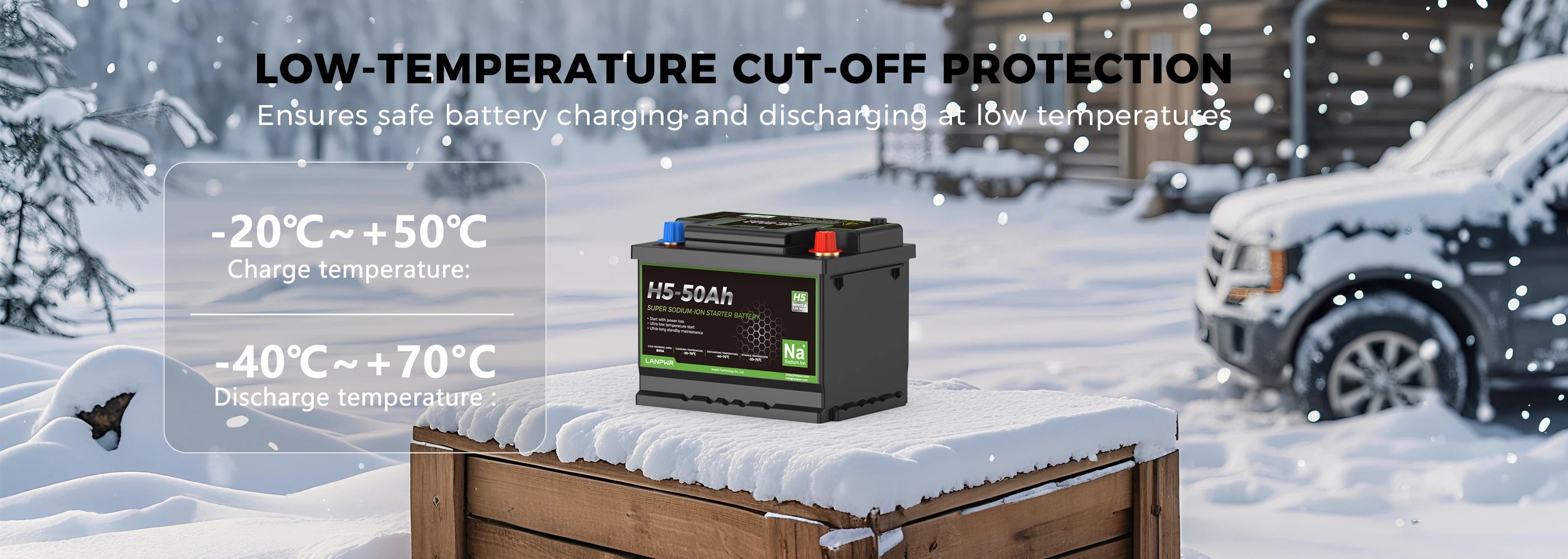 LANPWR 12V 50Ah Sodium-ion Starter Battery Max 800CCA | Reliable Power with Reduced Output at -40°C