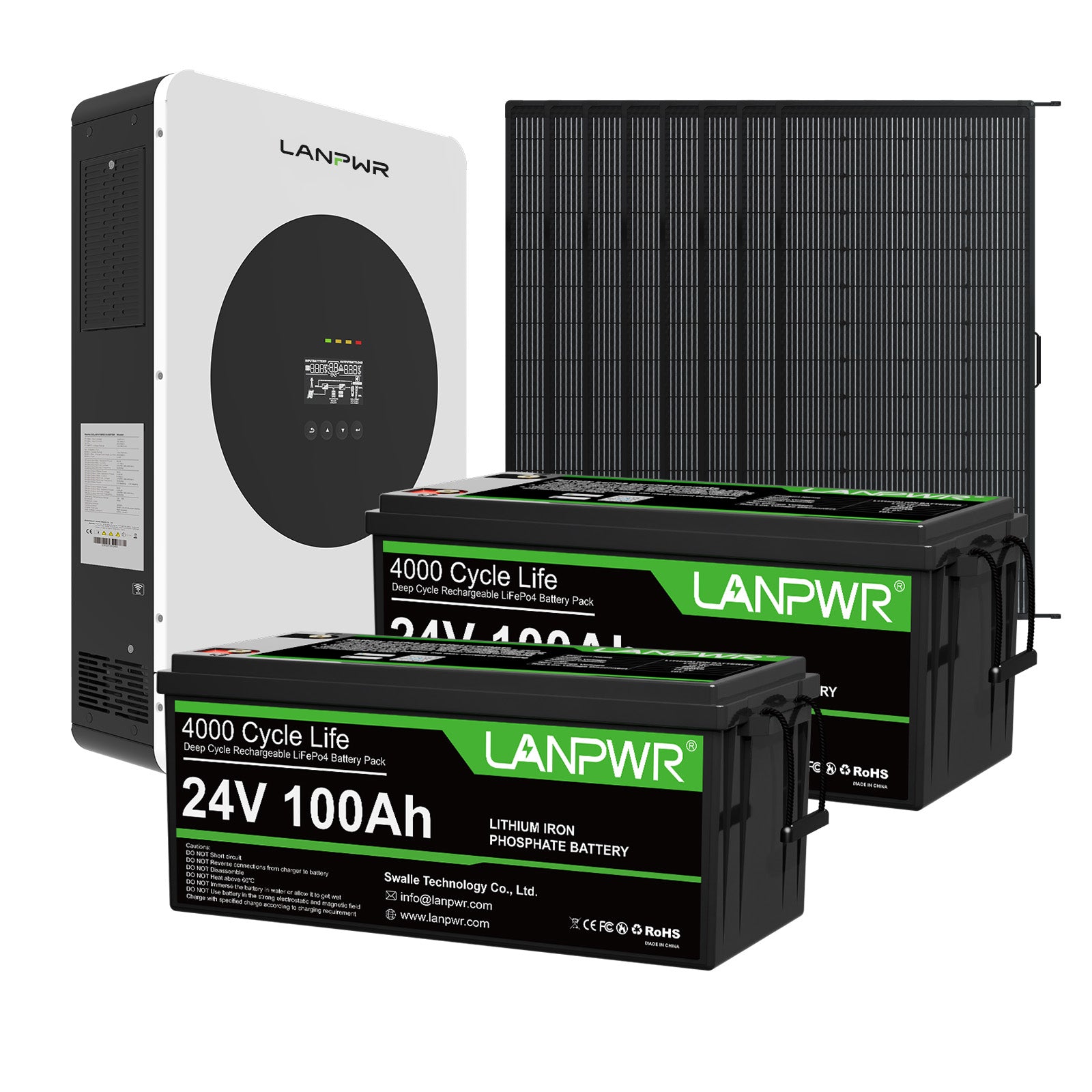 LANPWR 3600W 5120Wh Off‑Grid Solar Kit - 24V 3600W Off-grid Inverter, 2x24V 100Ah Lithium Battery