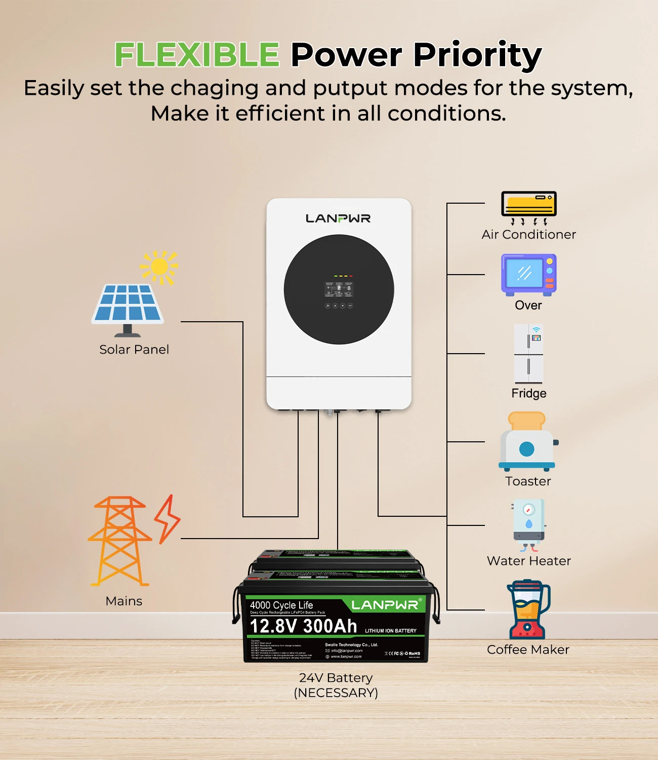 The system is fully expandable. Add more lifepo4 batteries and solar panels as needed. You may find you need more power depending on where in the country you are.