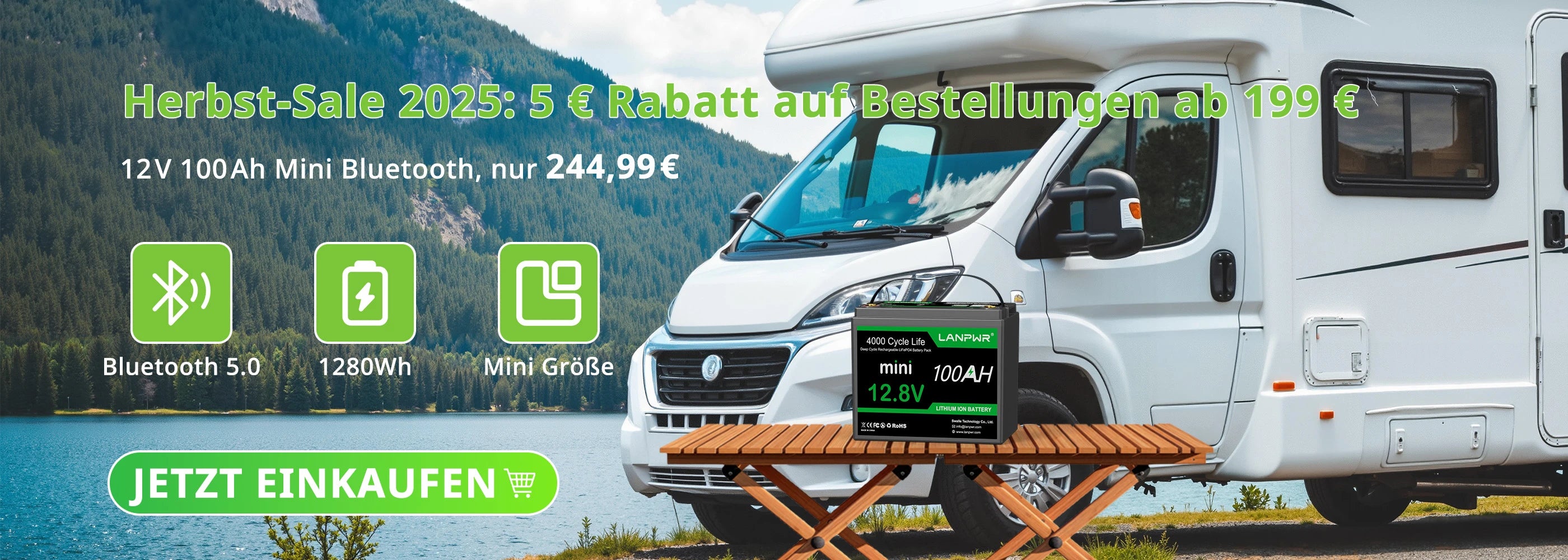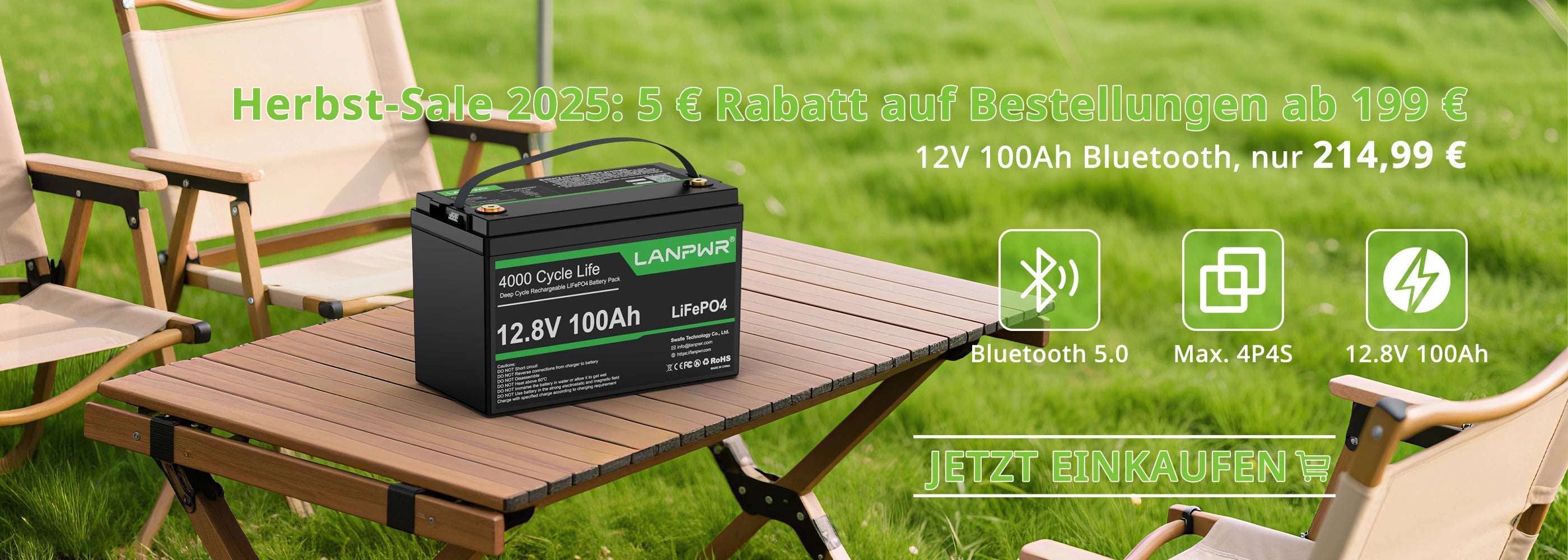 LANPWR 12V 100Ah LiFePO4 Battery with Bluetooth 5.0, 4000+ Deep Cycle Lithium Battery Sale priceFrom €214,99 Regular price€479,99