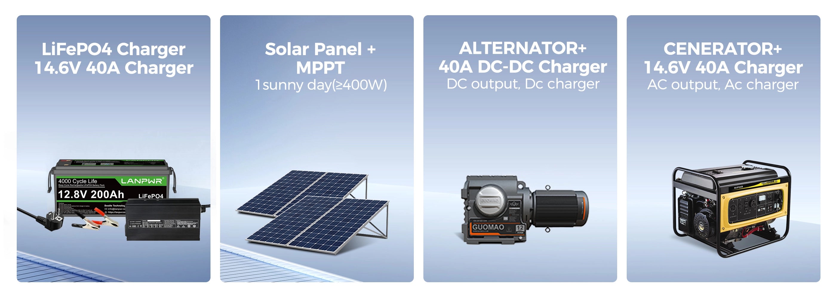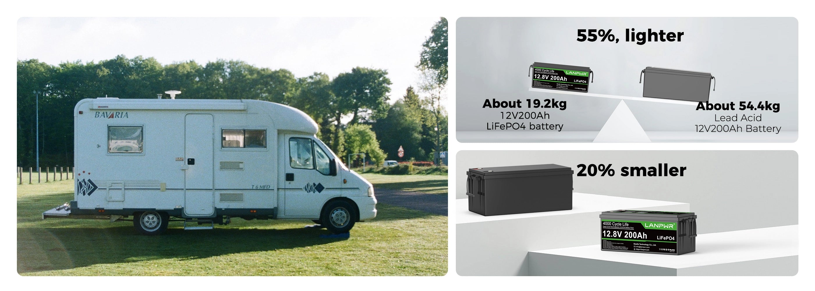 【Upgraded BMS】Lanpwr 12V 200Ah LiFePO4 can be charged at a current of up to 200A, doubling the previous capacity of 100A. This enhancement enables it to handle high output current loads, making it a dependable power source for all your energy needs.