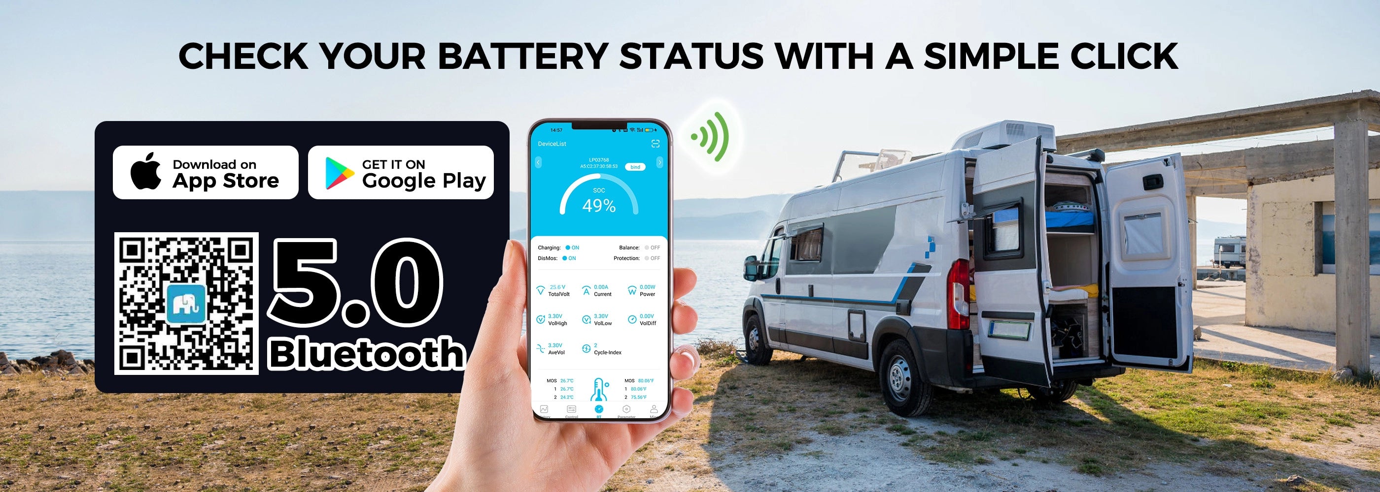 🔥Bluetooth Real-Time Monitoring: Meet new LANPWR 12V 100Ah LiFePO4 battery featuring Bluetooth 5.0. Now you can check the status of battery voltage, current and capacity at any time from your phone. Also you'll be able to keep a close eye on the battery remaining working life. Stay confident and focused on every fishing trip without worrying about unexpected power loss